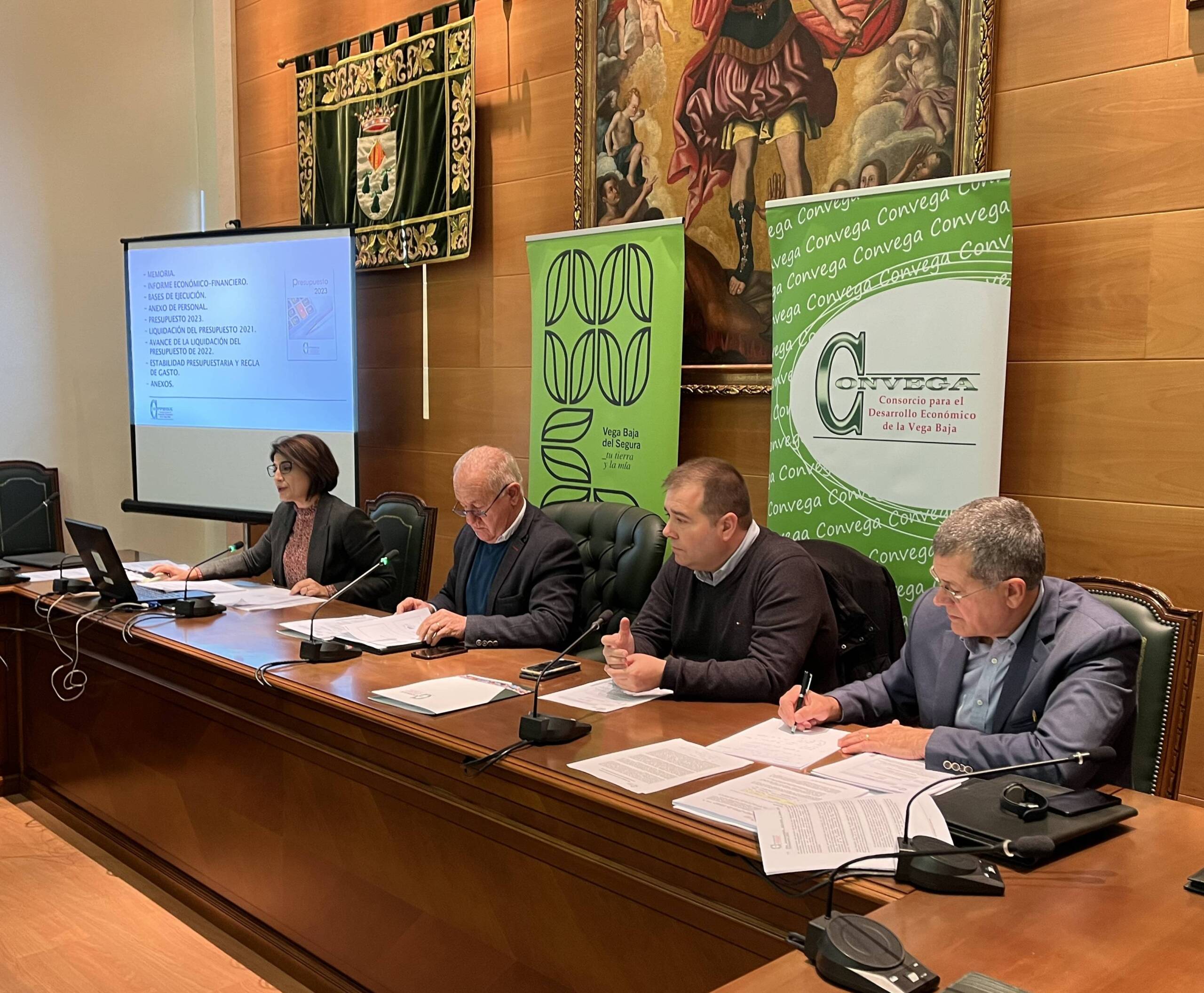 El Pleno del Consorcio para el Desarrollo Económico de la Vega Baja (Convega), celebrado en el ayuntamiento de Daya Nueva, con su alcalde Pablo Girona como anfitrión y bajo la presidencia de Sebastián Cañadas, diputado provincial de sectores productivos, ha aprobado por unanimidad el presupuesto para el próximo año 2023, que asciende a 866.726,50 euros y cuenta con las aportaciones ordinarias de la Diputación de Alicante y de los veintisiete municipios de la comarca de la Vega Baja del Segura que conforman la entidad.